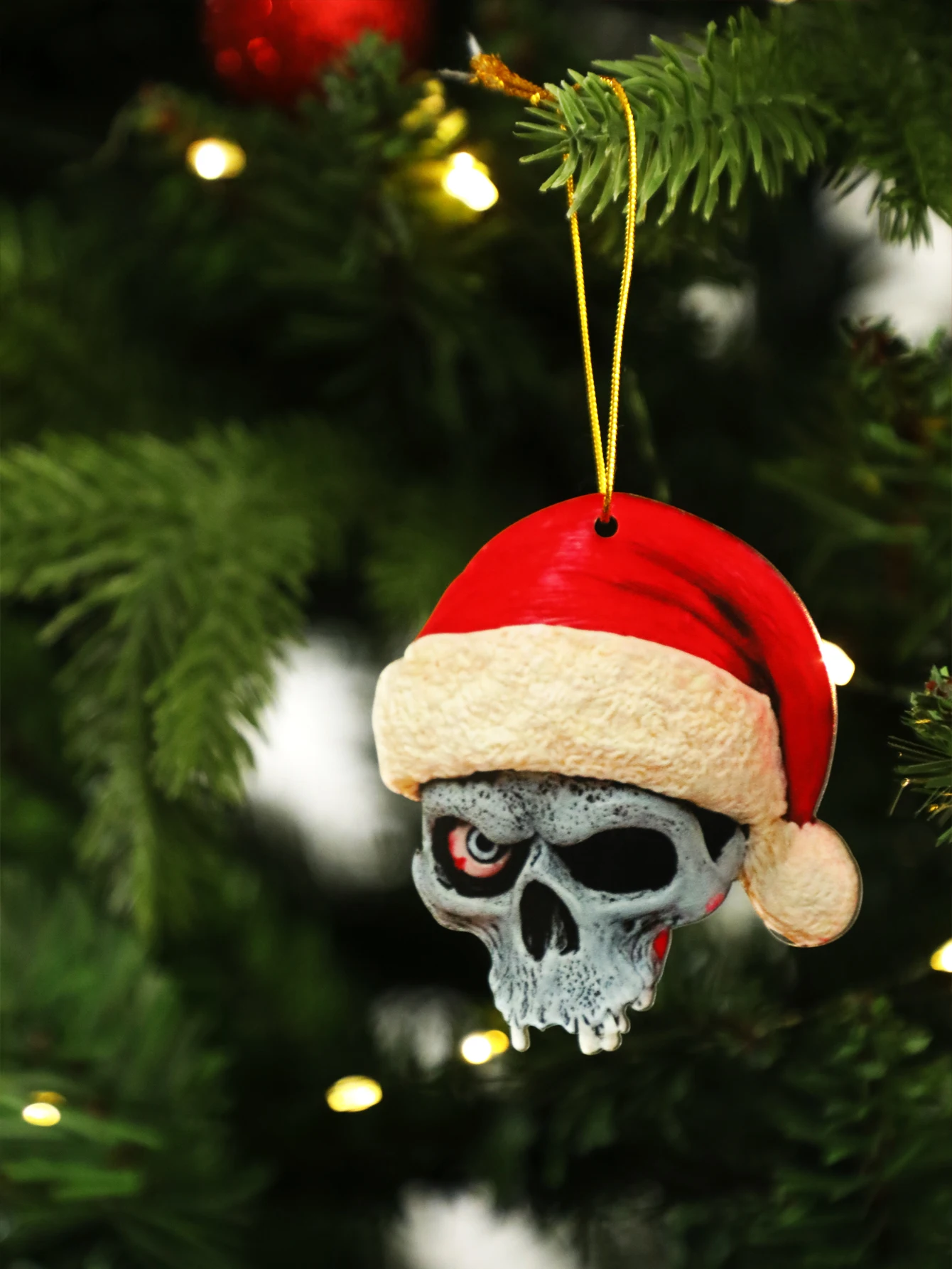 Christmas Skull Ornament with Santa Hat, Gothic Hanging Decoration